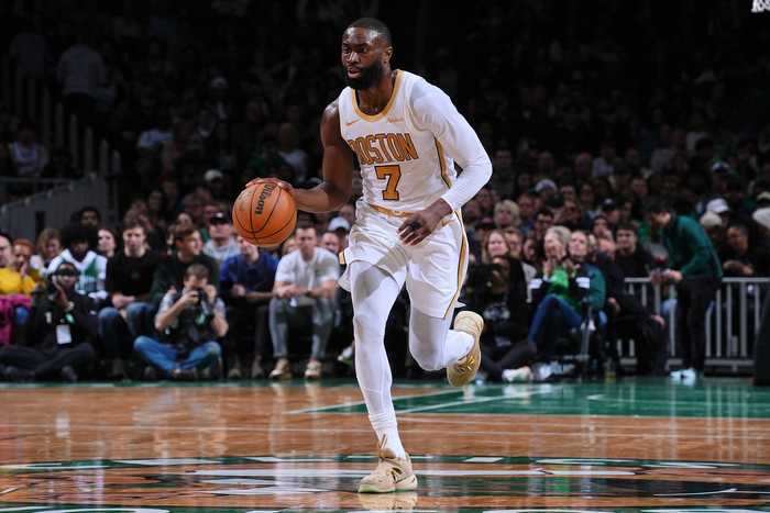1月6日讯 NBA常规赛,凯尔特人半场54-33领先公牛。 杰伦·布朗上半场手感冰凉,全无上一场爆砍50+的准星。他半场打了20分钟,14投3中(三分1中0)、罚球2中1,得到7分6篮板3助攻,有2次失误,正负值+18。