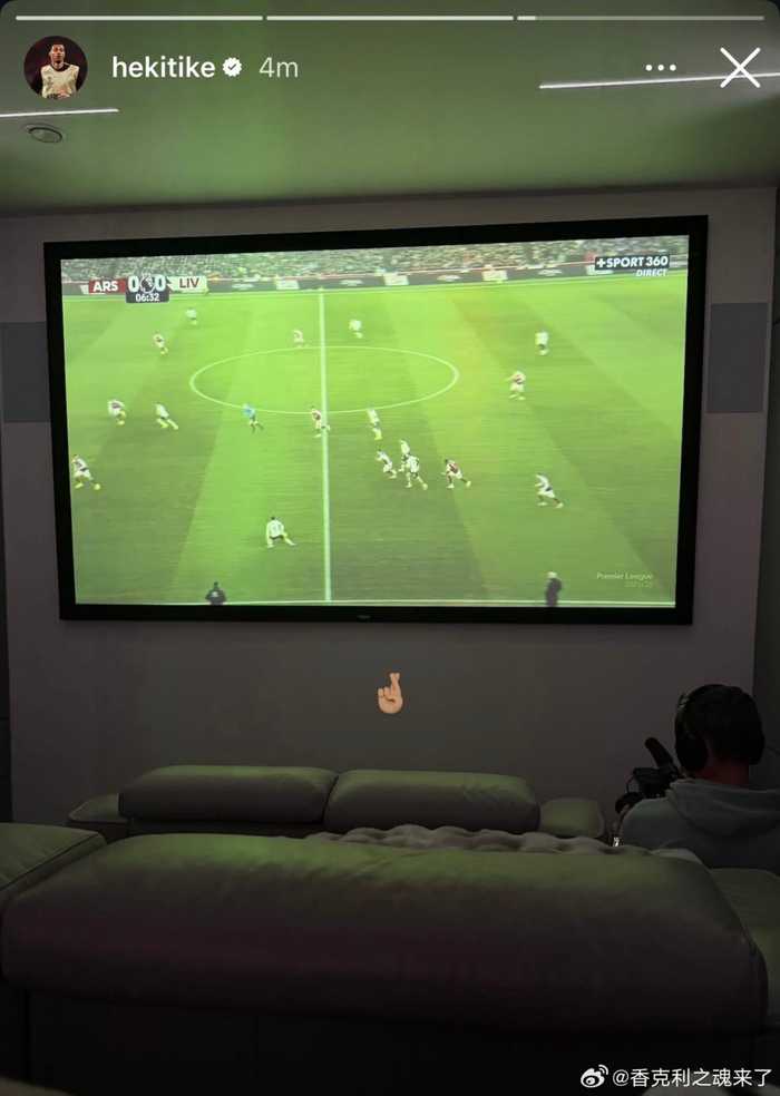 埃基蒂克宅家观战利物浦对阵阿森纳之战