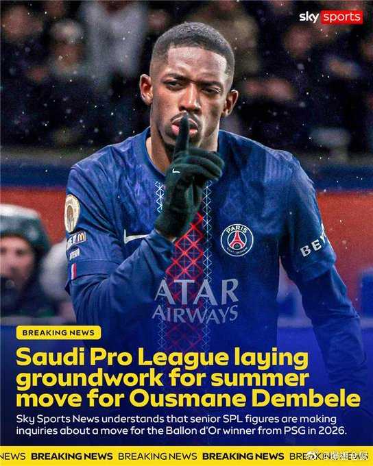【重磅交易】天空体育:沙特联赛高层准备在2026年美加墨世界杯后求购巴黎的金球奖得主登贝莱,这名法国国脚的合同还剩2年半,与巴黎的续约谈判进展不顺利。 如果签下登贝莱,那将是沙特联赛自签下C罗后最重磅的交易。 #法甲#