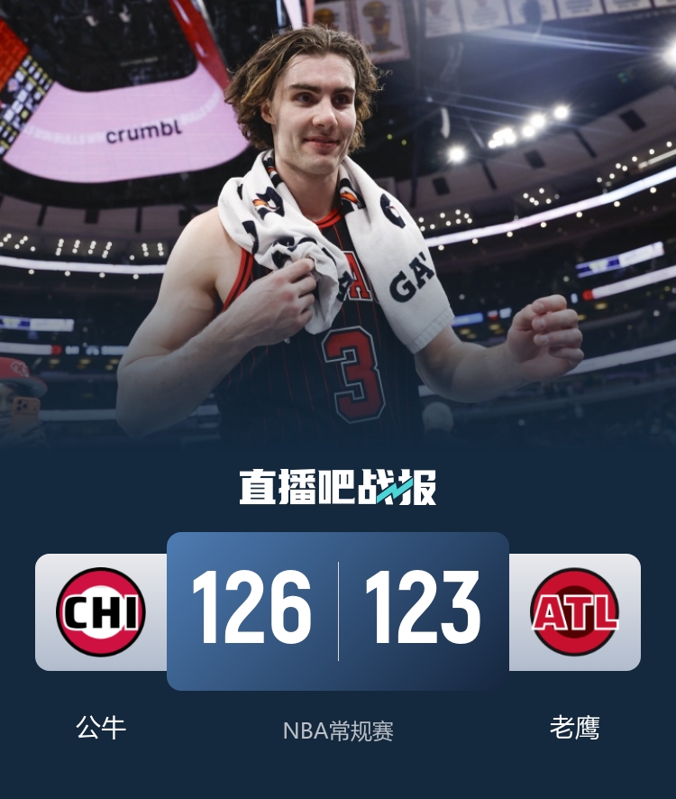12月24日讯 NBA常规赛继续进行,老鹰坐镇主场迎战公牛,此前老鹰三连败后15胜15负位列东部第9,而公牛则是三连胜后13胜15负排名东部第10,此役丹尼尔斯和波尔津吉斯缺阵。